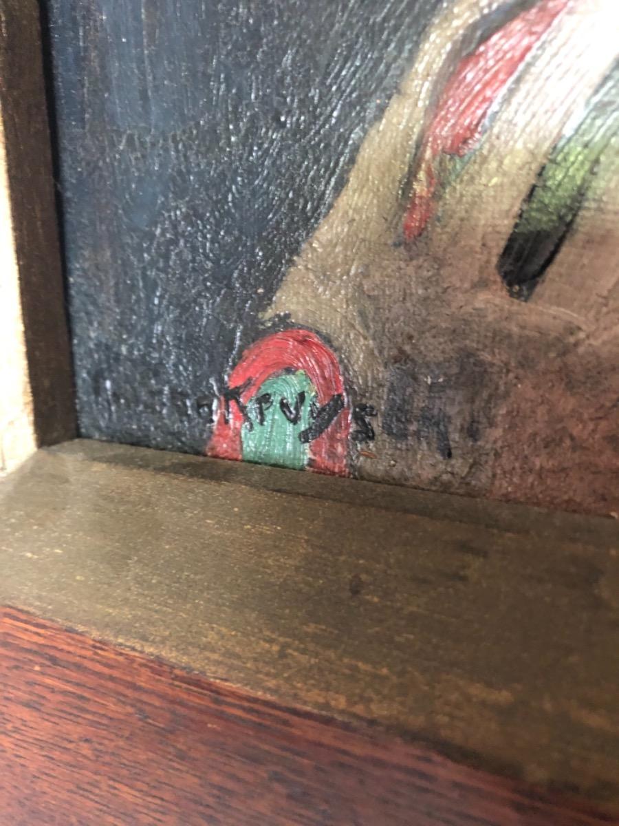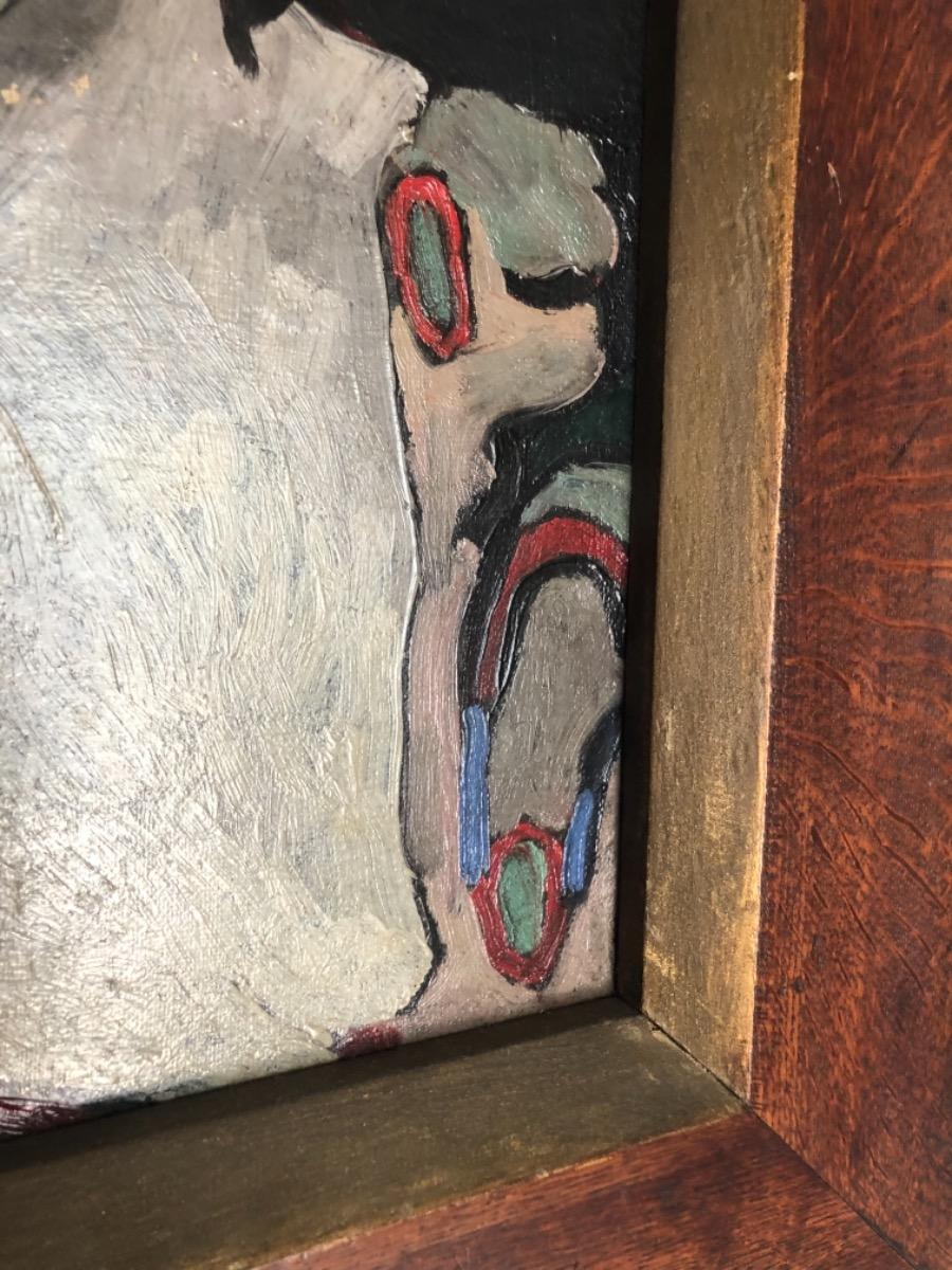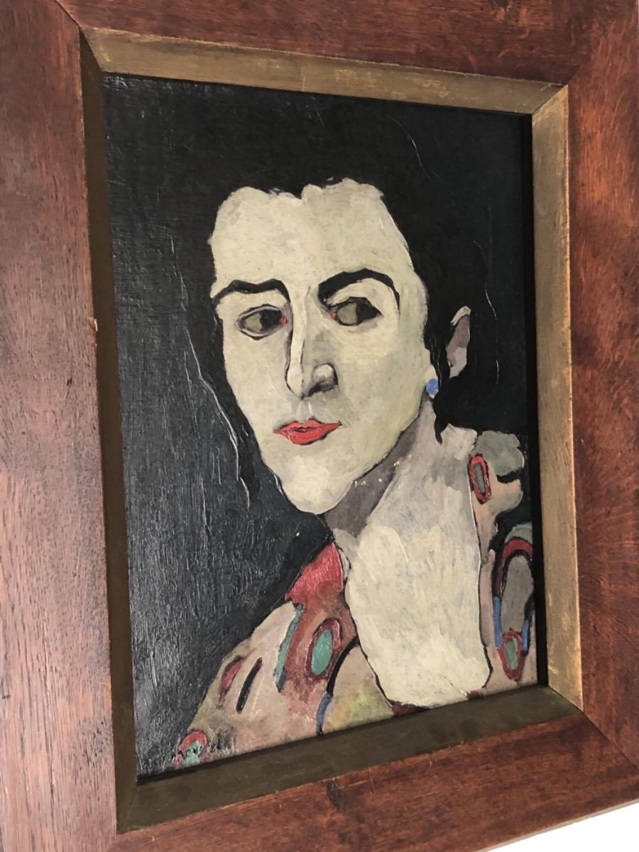 Anton Kruysen ( 1898 - 1977 ) . Huile sur toile . Portrait de personnage du cirque . Signée en bas a gauche .