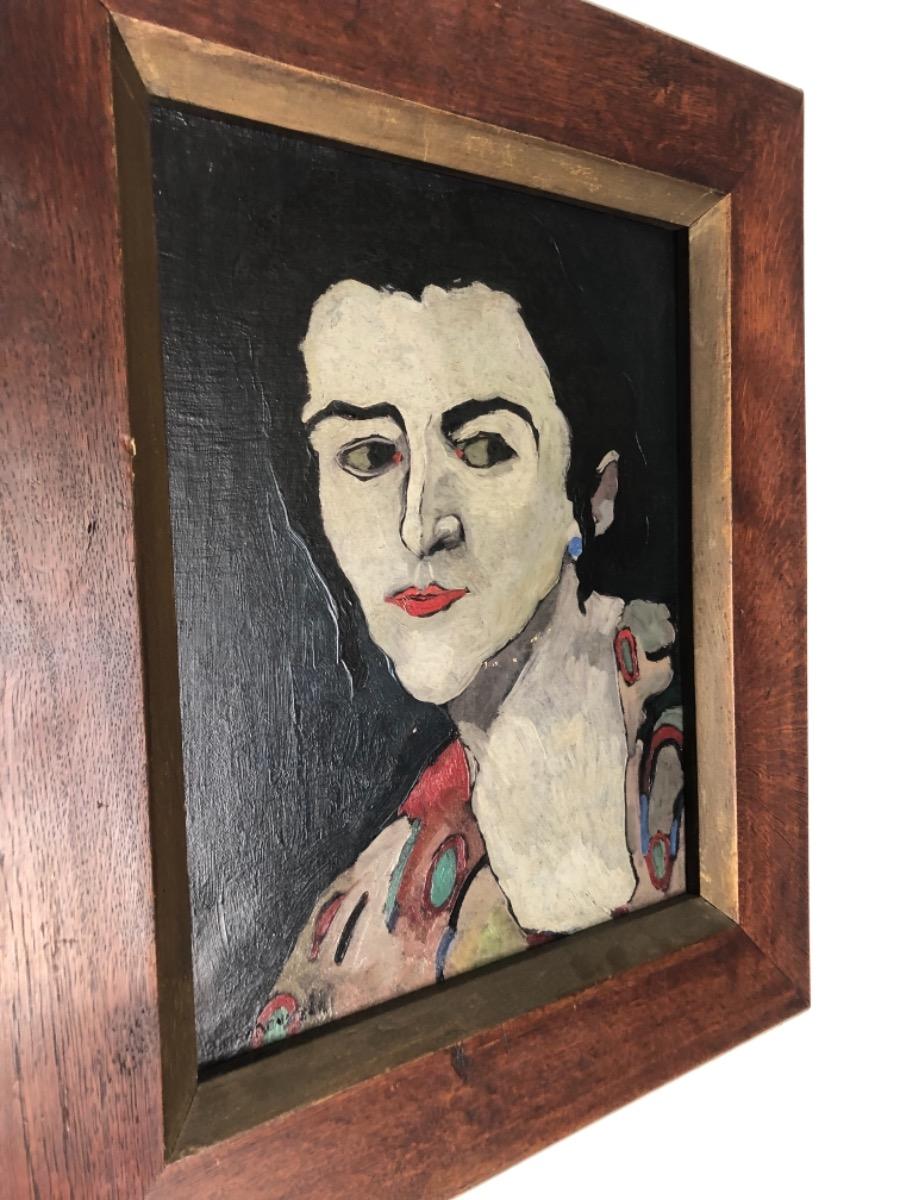 Anton Kruysen ( 1898 - 1977 ) . Portrait de clown . Huile sur toile signée .