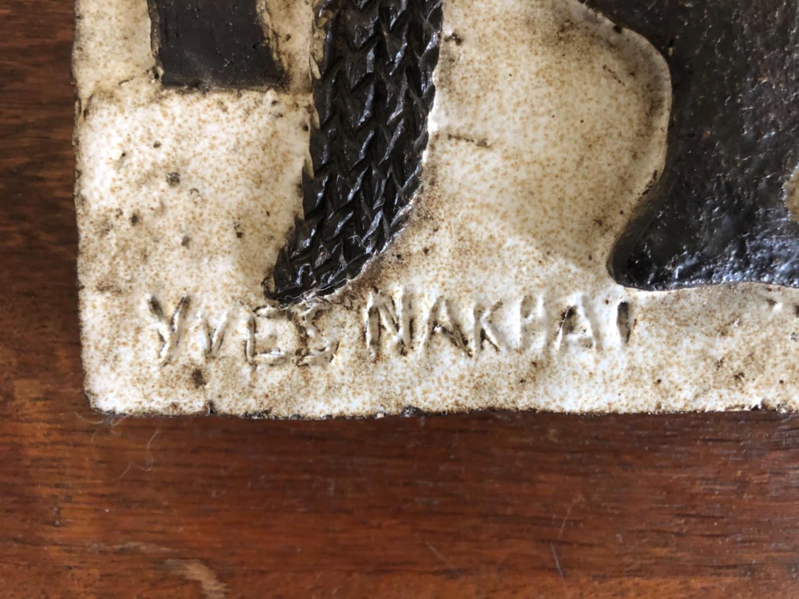 Bas relief orientaliste en céramique circa 1940 - 1950 . Inspiré de la Perse . Signé