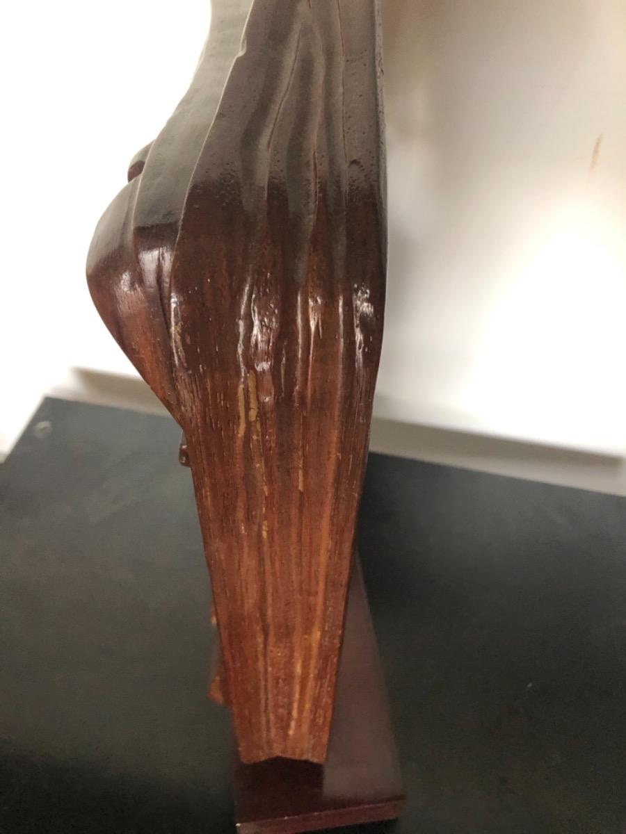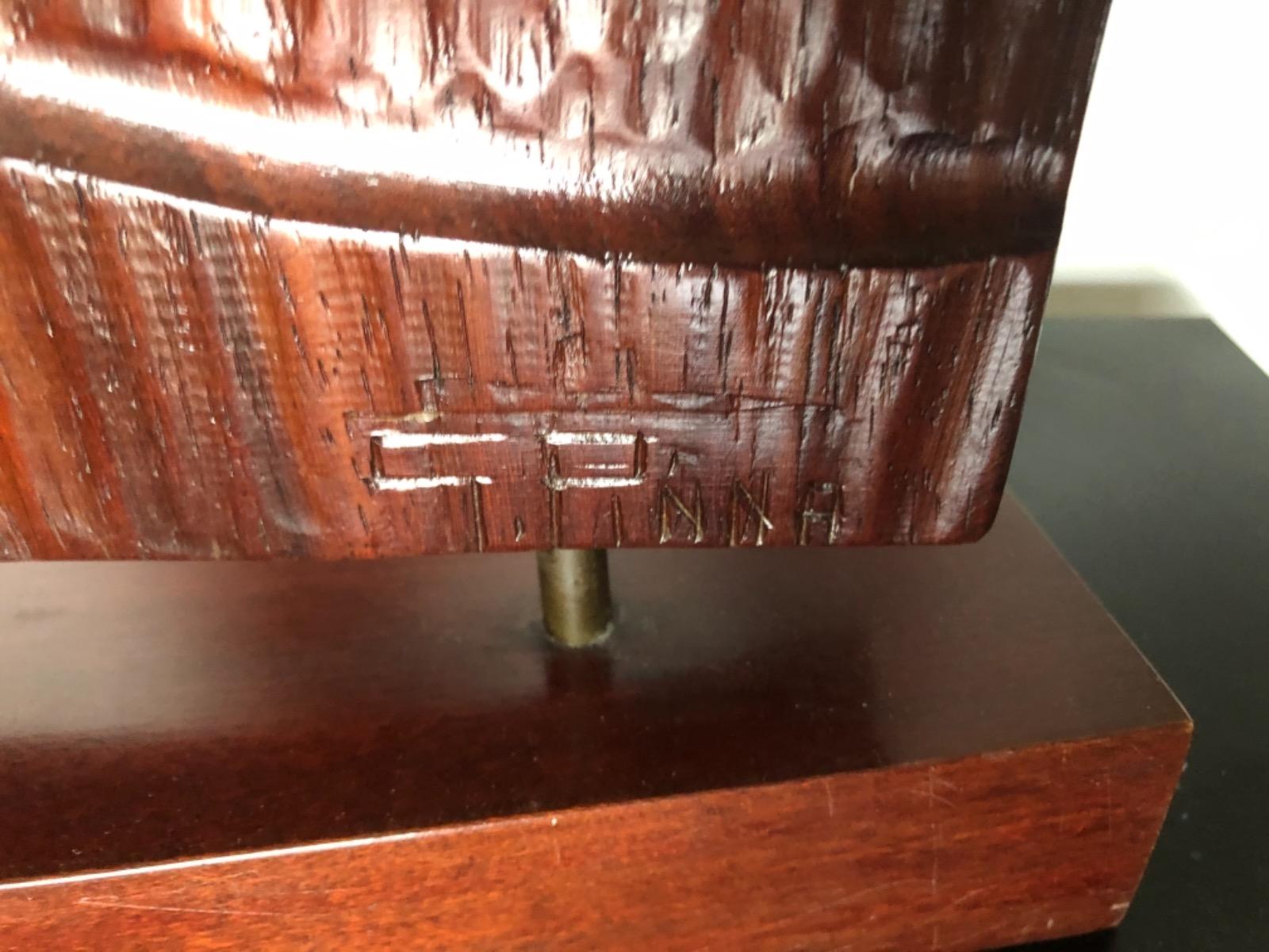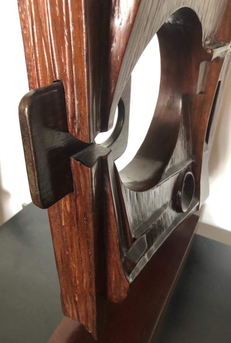 Gianni Pinna. Sculpteur . Grande sculpture abstraite en bois massif . Italie vers 1960 . Signée dans la masse .