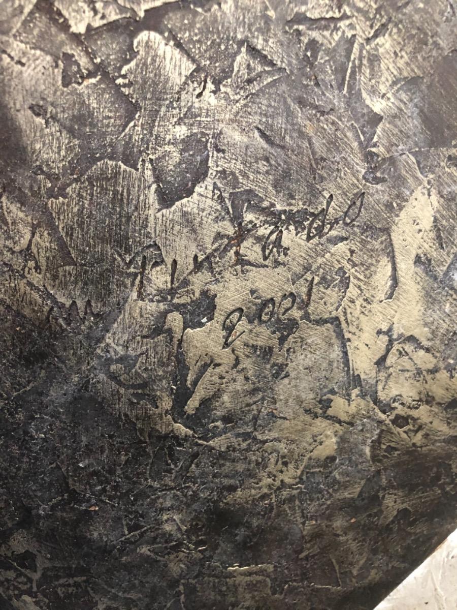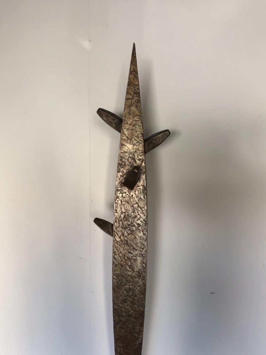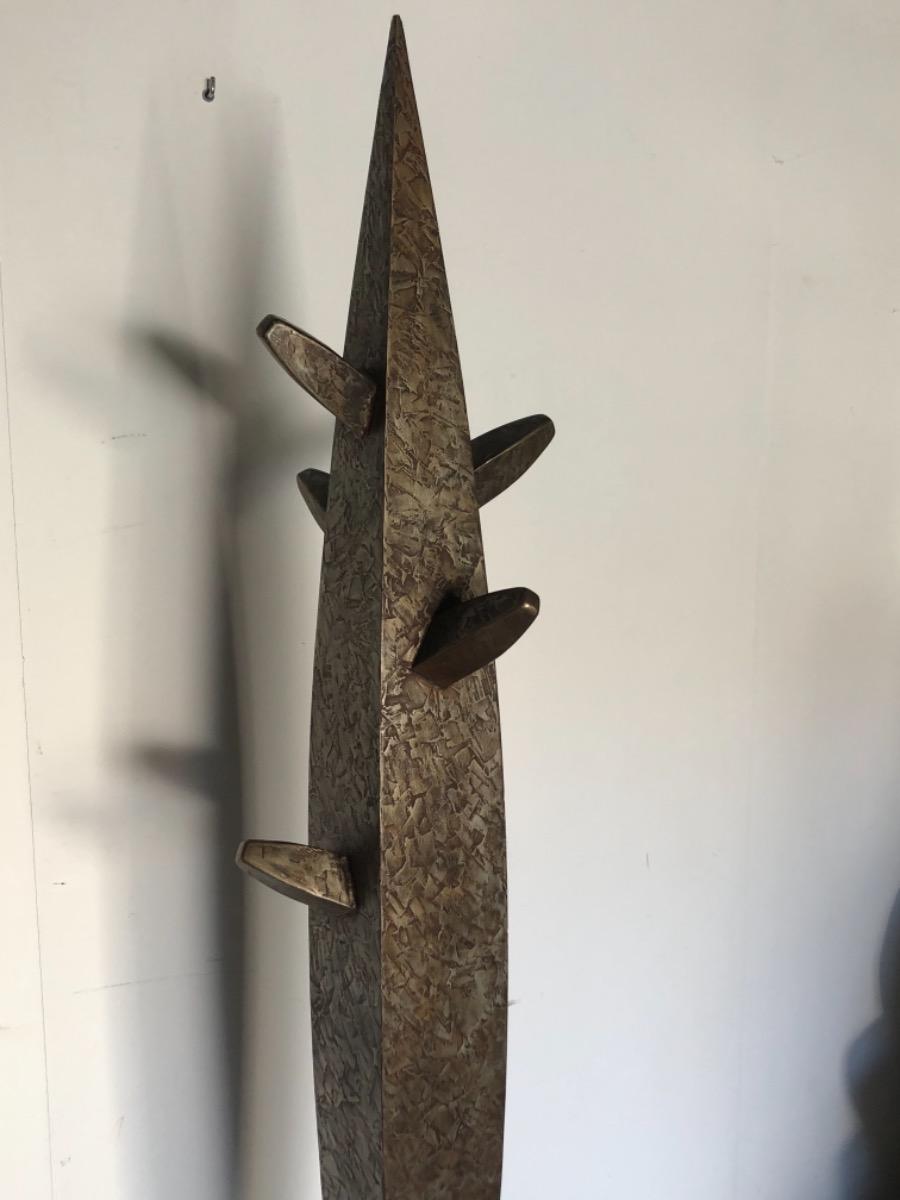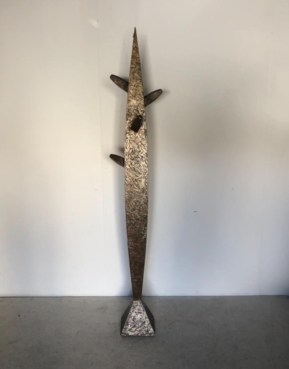 Importante sculpture totem en bois enduit au couteau . Signée et datée sous la base .