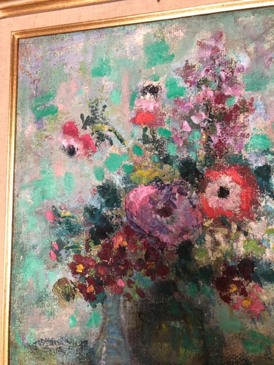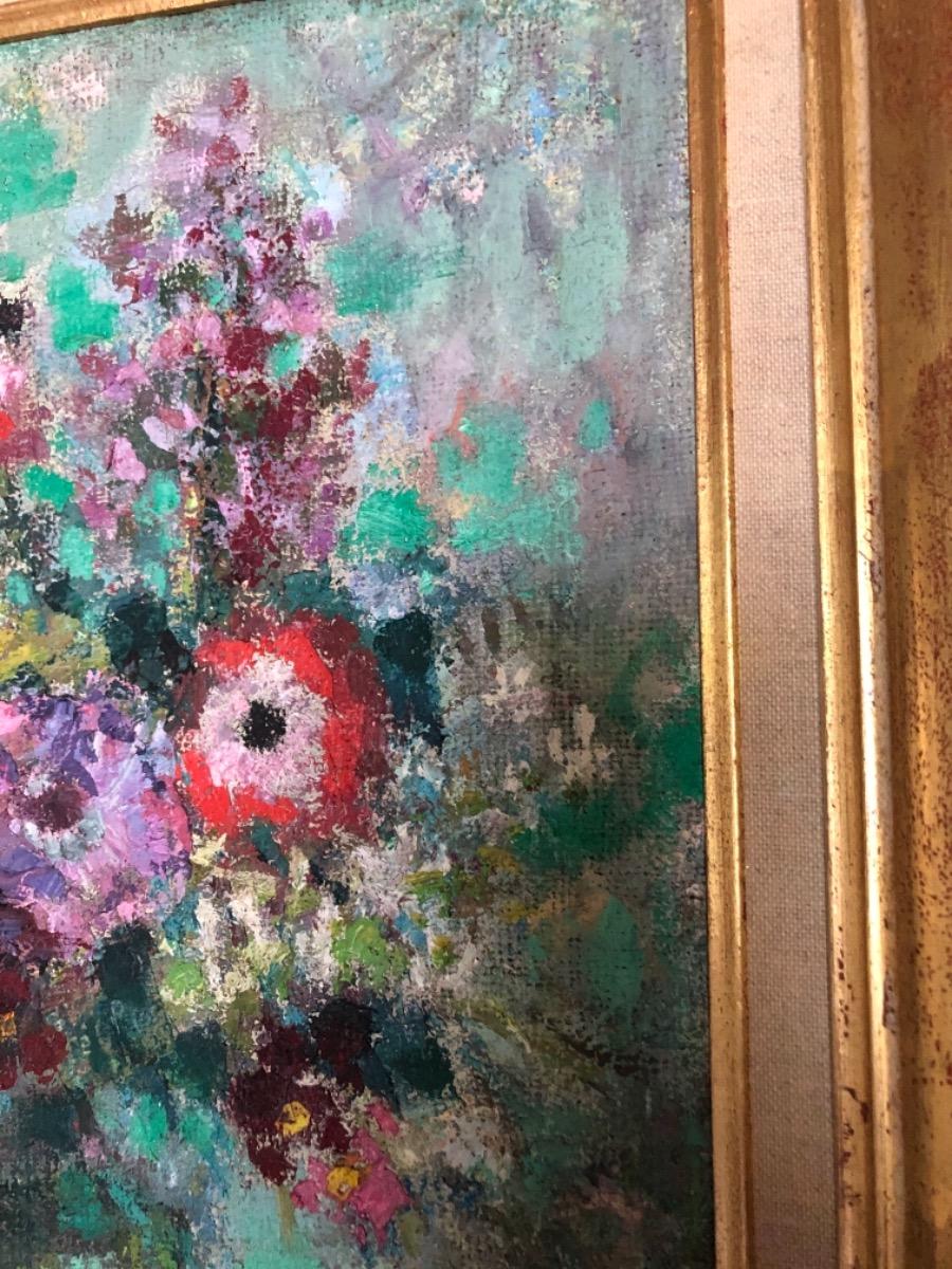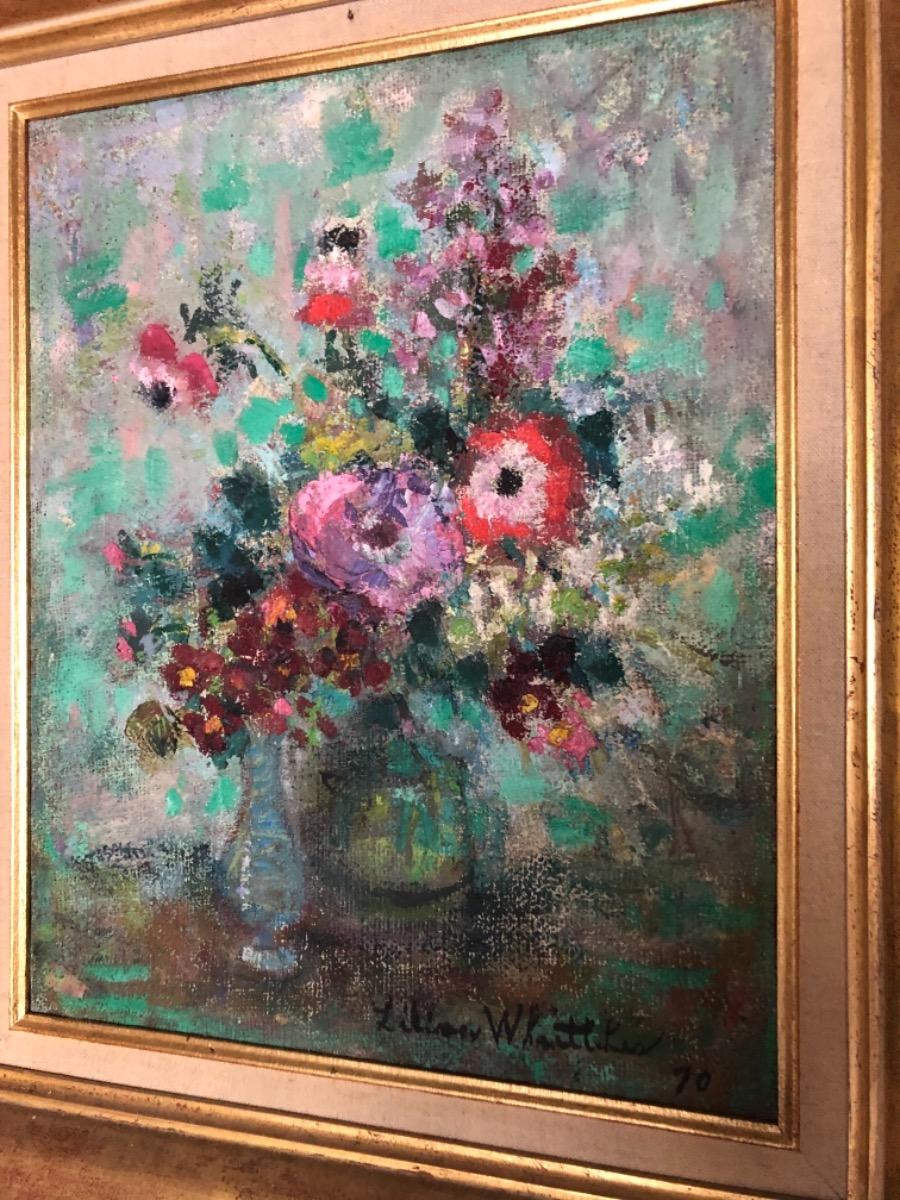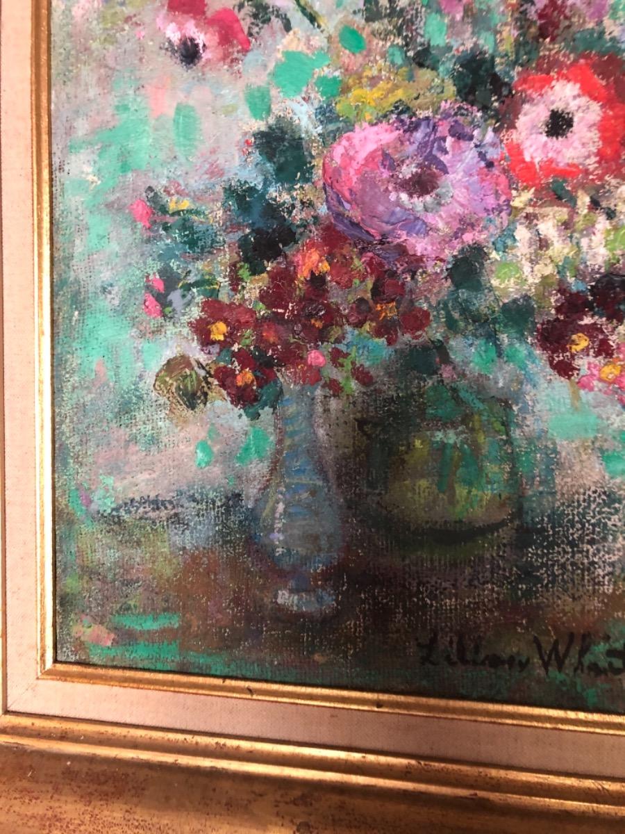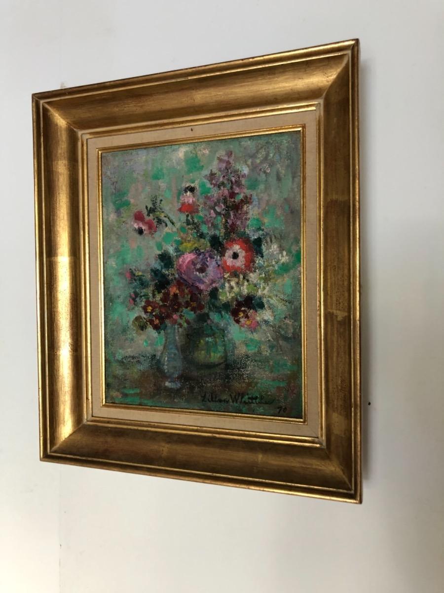 Lilian Whitteker ( 1881 - 1979 ) . Huile sur toile . Nature morte au bouquet de fleurs . Signée et datée 1970 . Cadre d’origine .