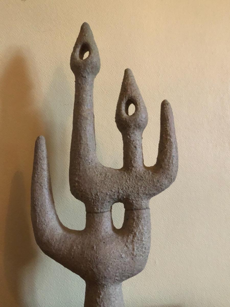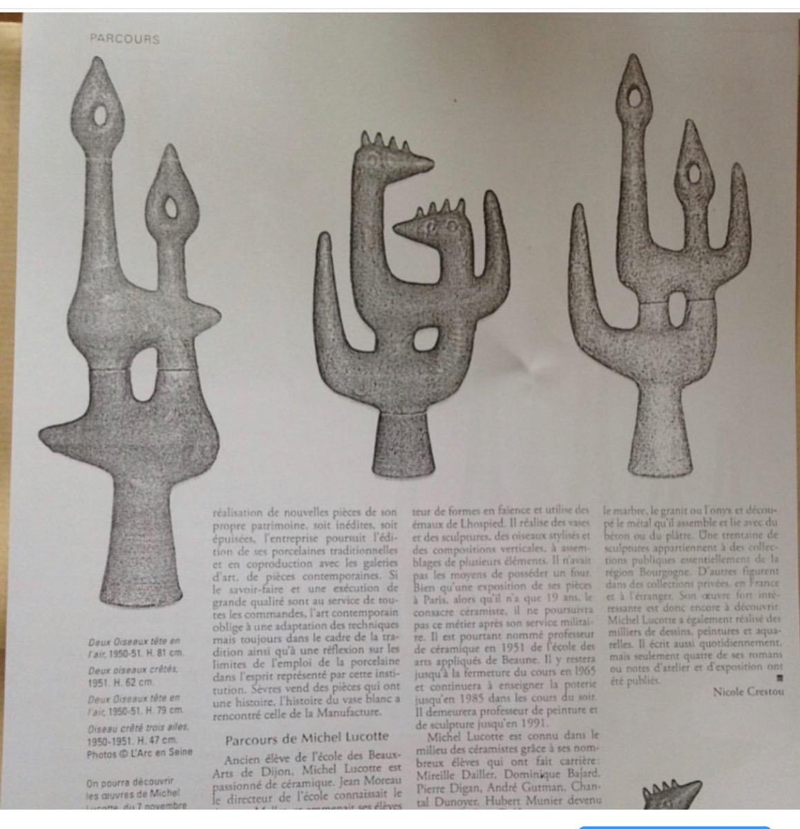 Michel Lucotte ( 1931 ) . sculpture en ceramique . « deux oiseaux tête en l’air « 1951