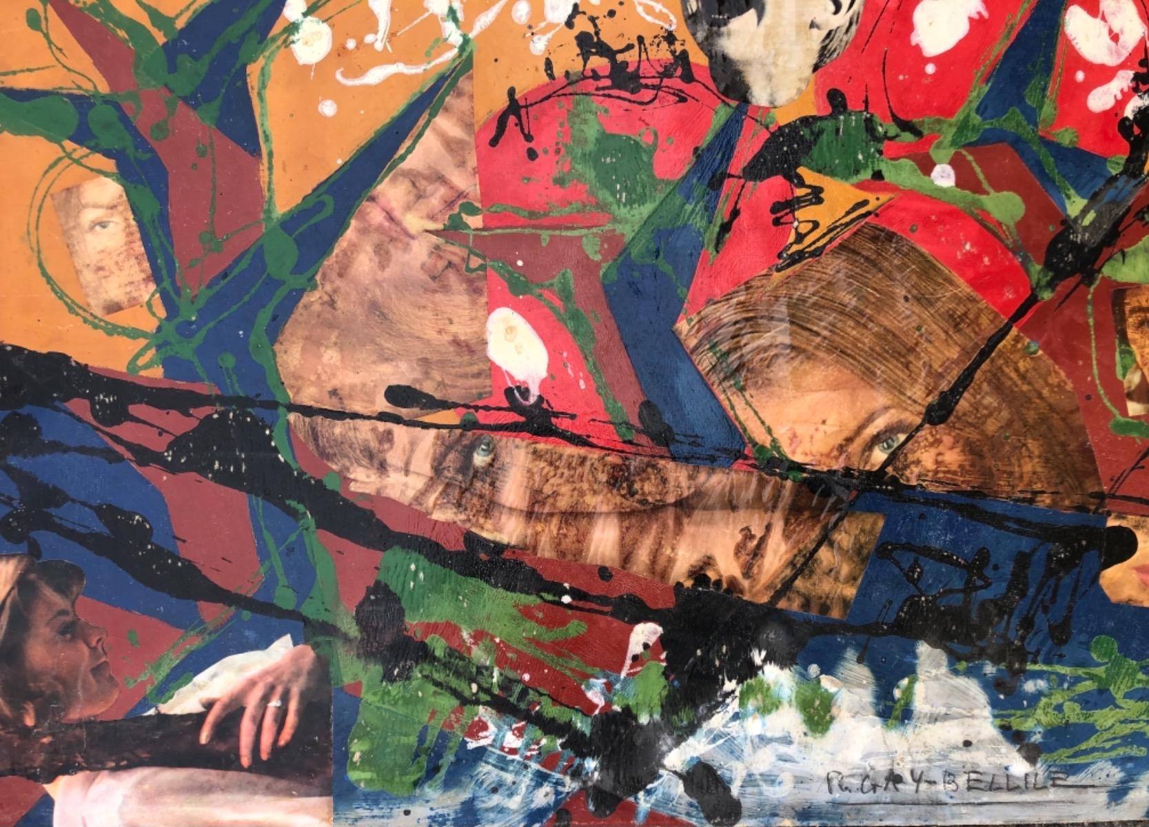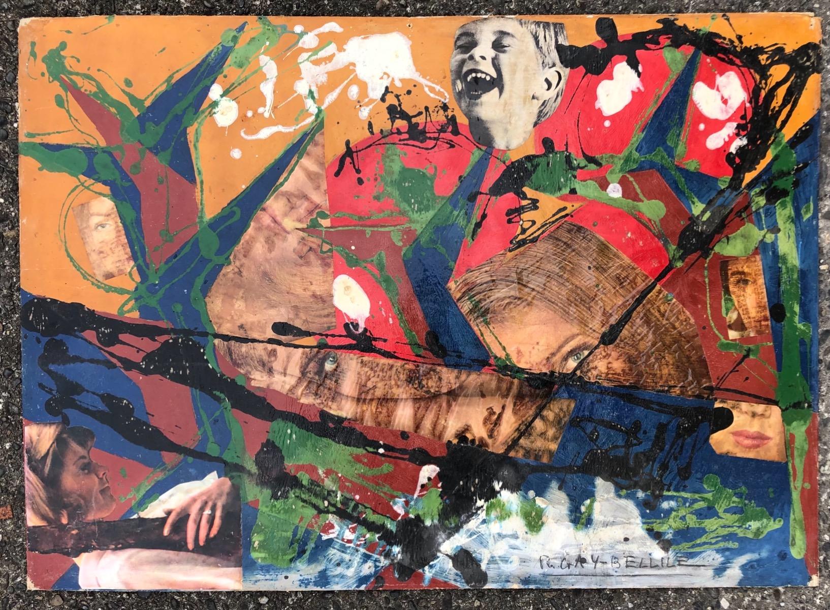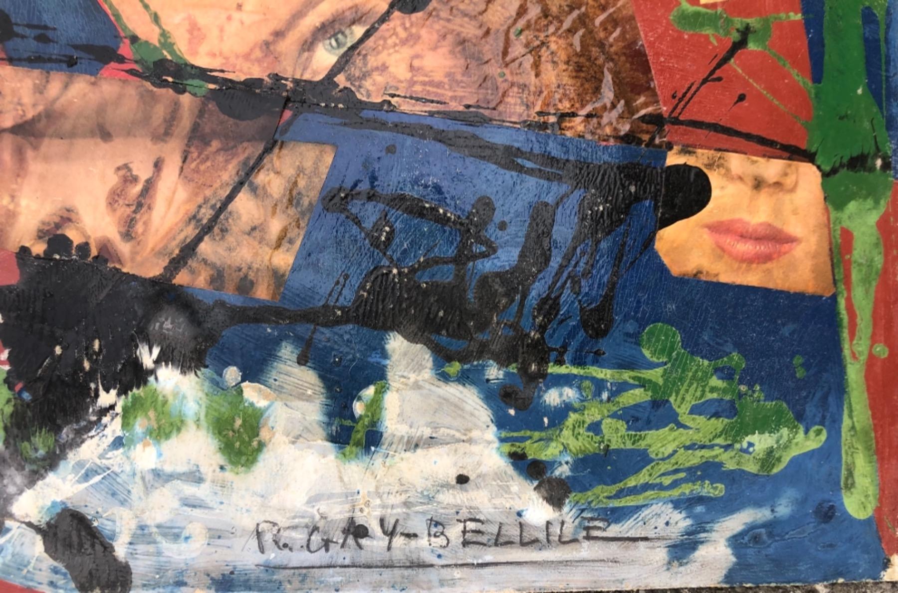 Raymond Gay Bellile ( XX eme ) Composition «  visage » . Collage et huile Août 1964