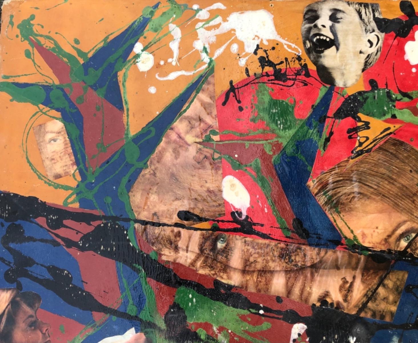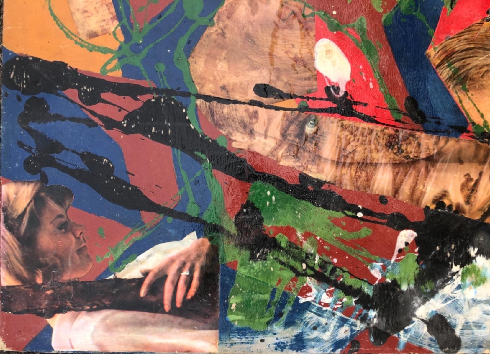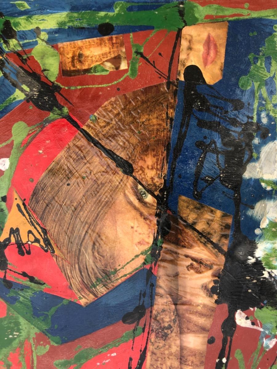 Raymond Gay Bellile ( XX eme ) Composition «  visage » . Collage et huile Août 1964