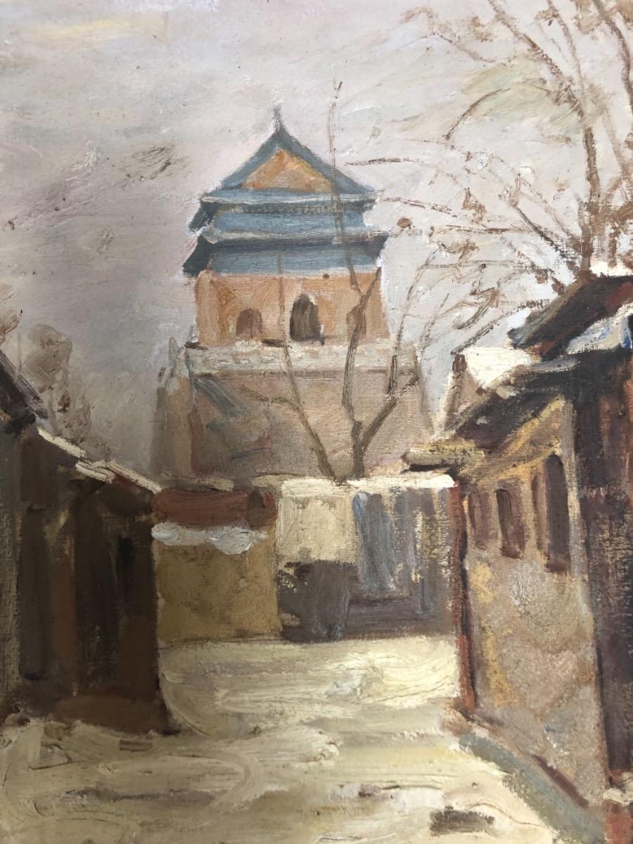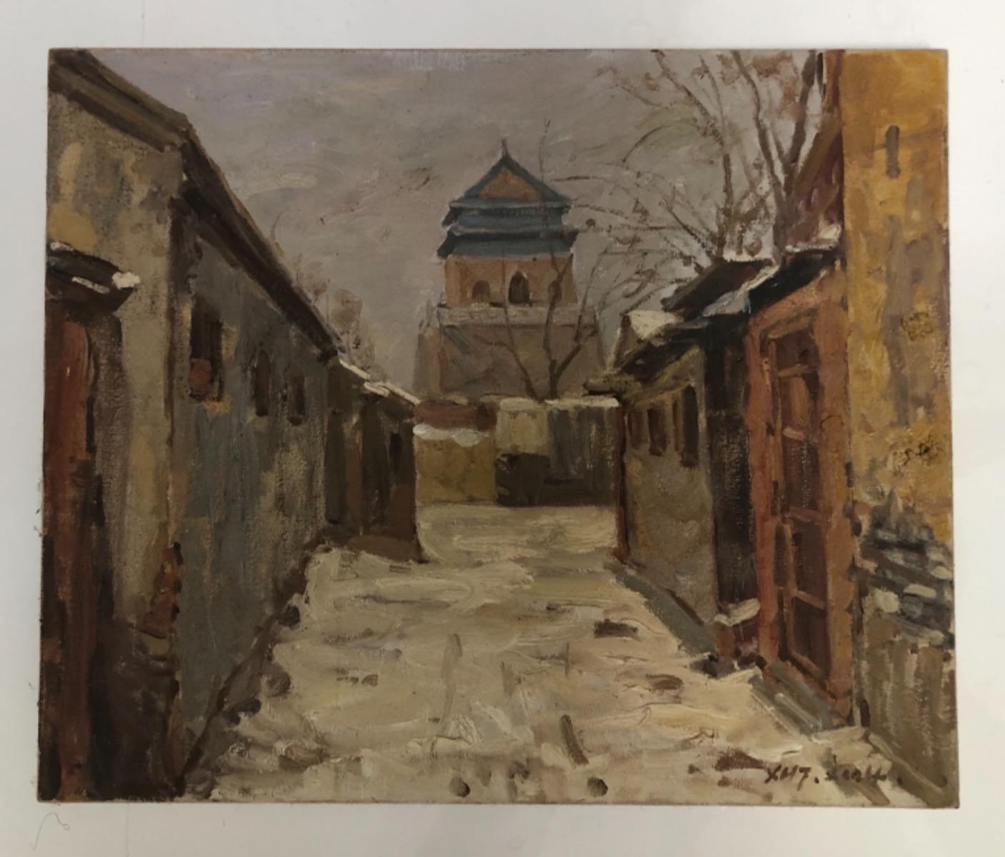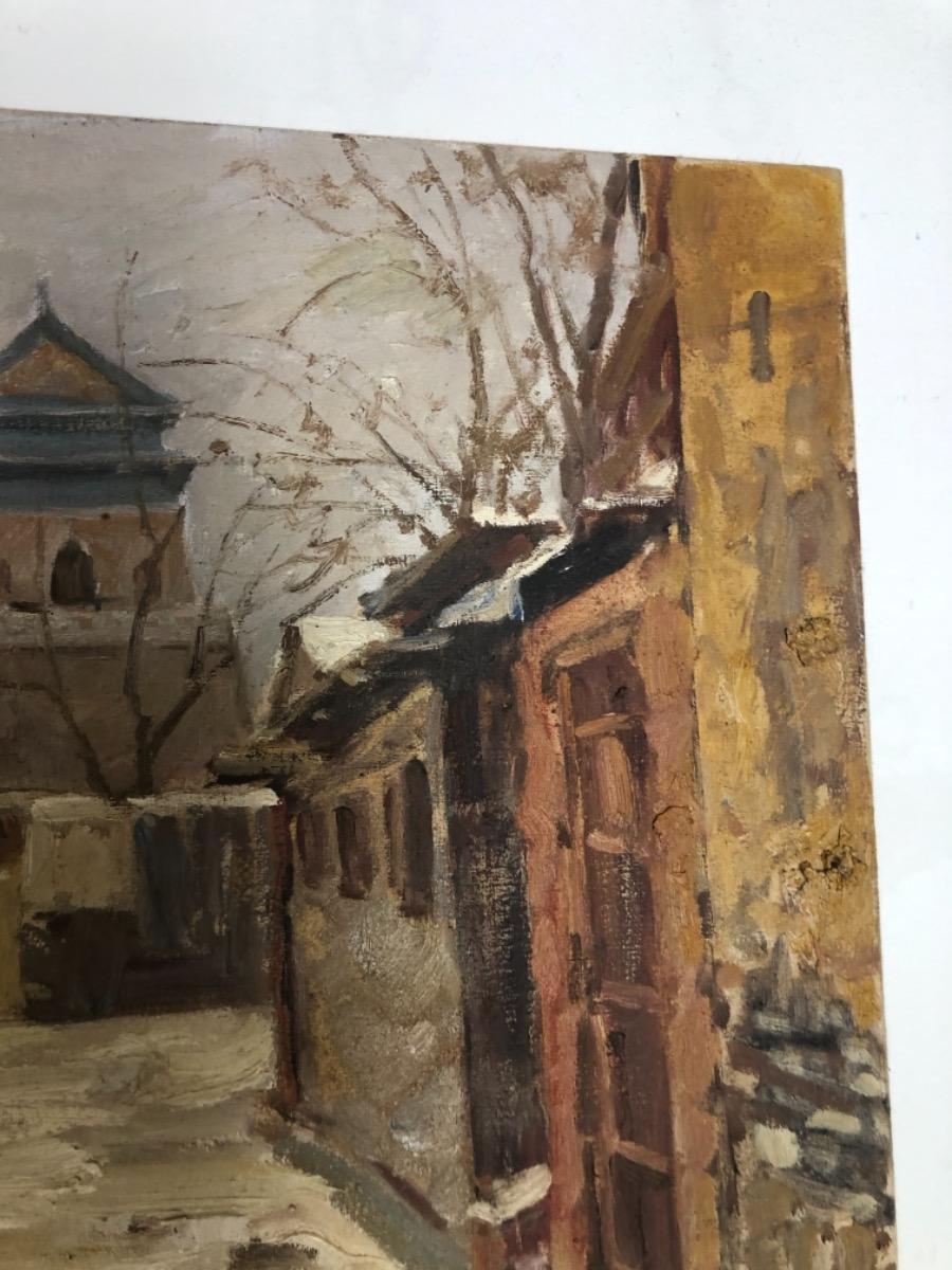 Xu Hong Tao ( 1967 ) . Huile sur toile . Paysage d’hiver en chine . Signé .