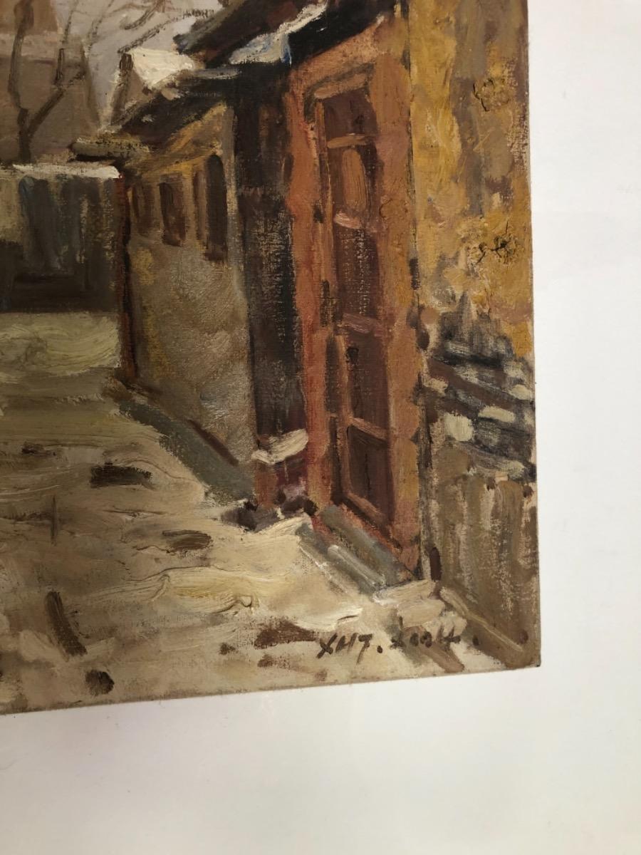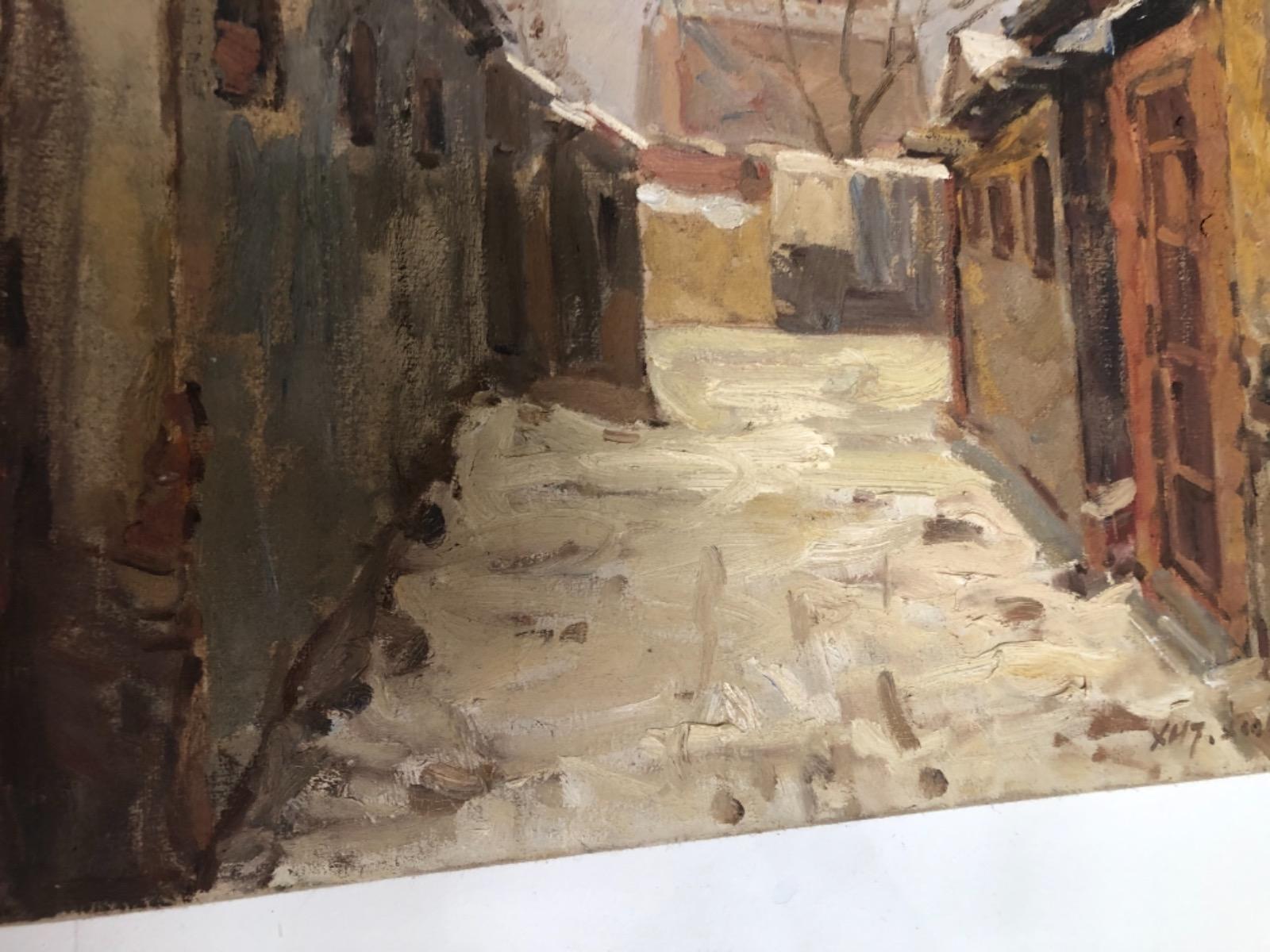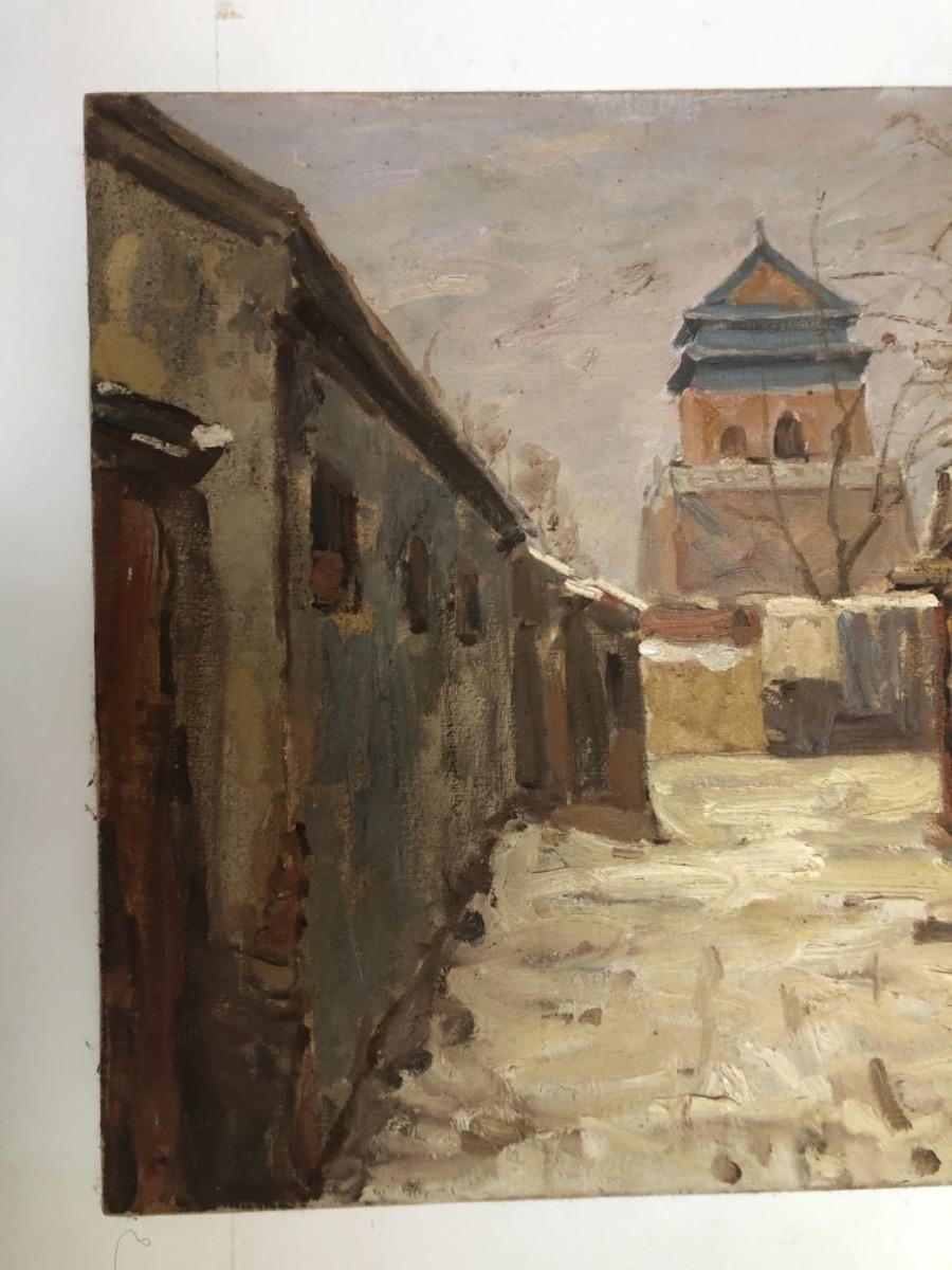 Xu Hong Tao ( 1967 ) . Huile sur toile . Paysage d’hiver en chine . Signé .