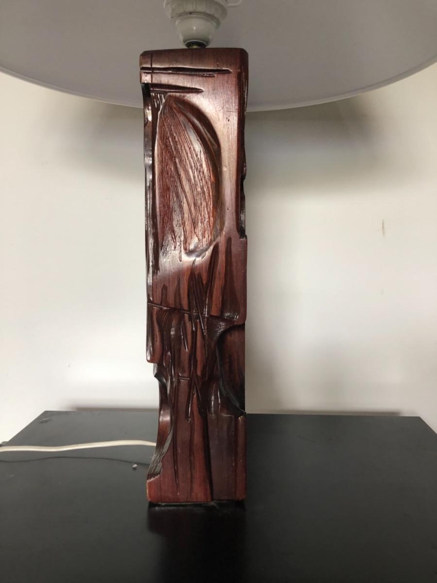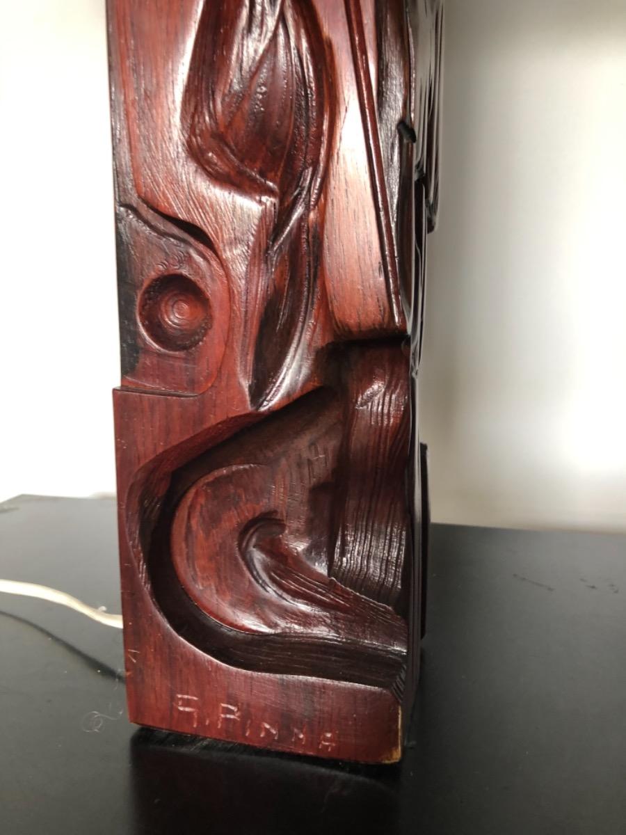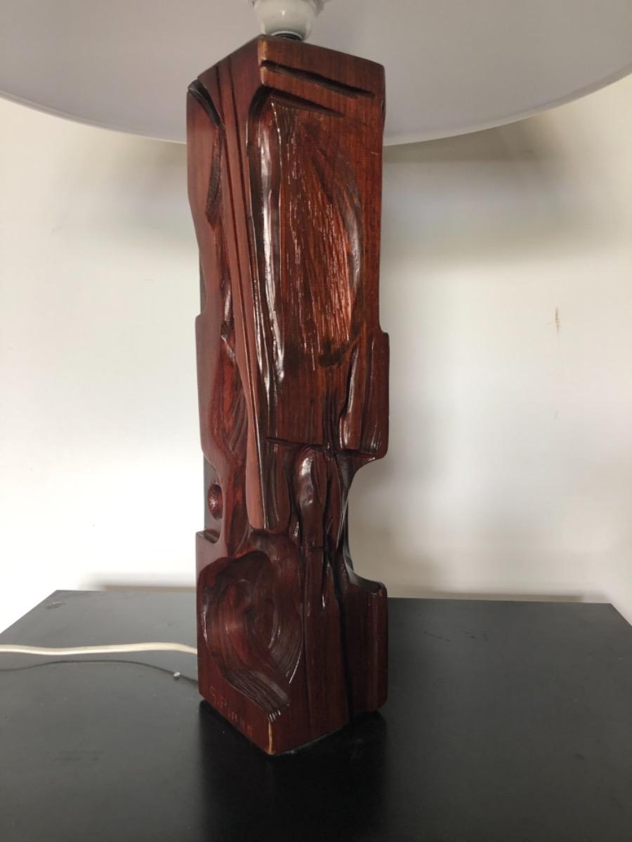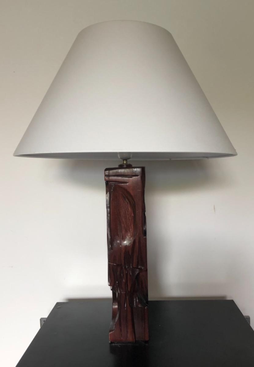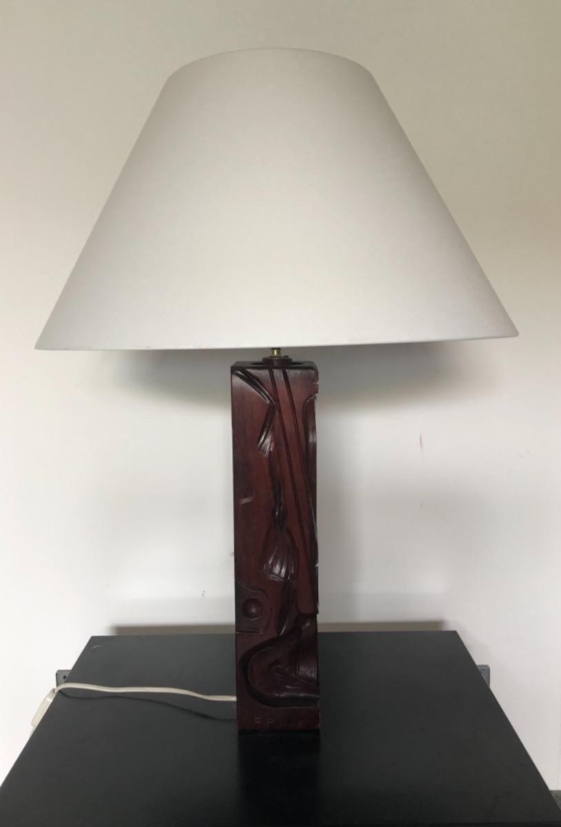 Grande lampe entièrement sculptée a la main . Réalisé par l’artiste .