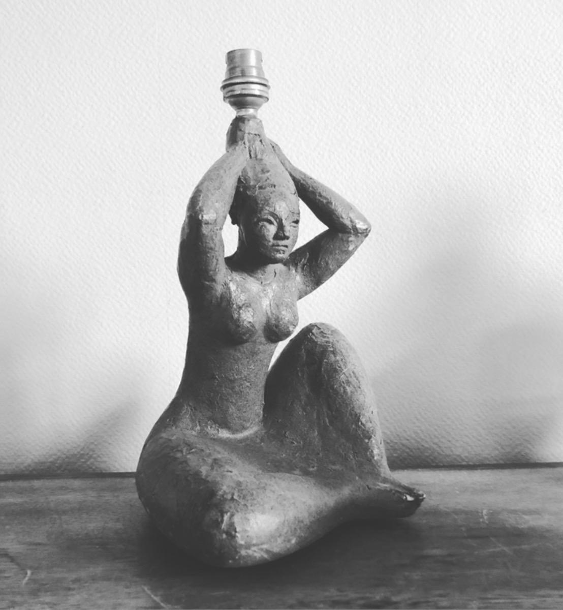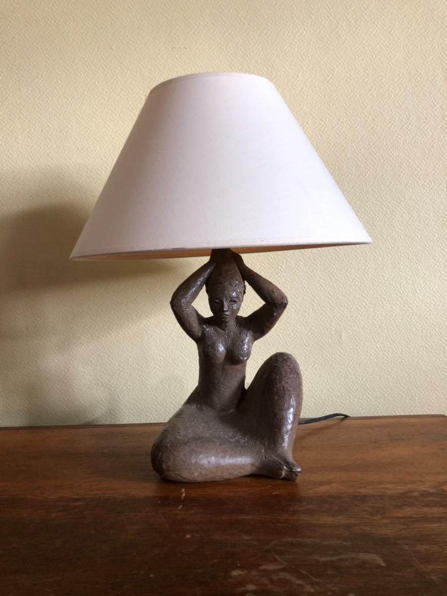 Joelle Deroubaix . Lampe en Grès circa 1960 .