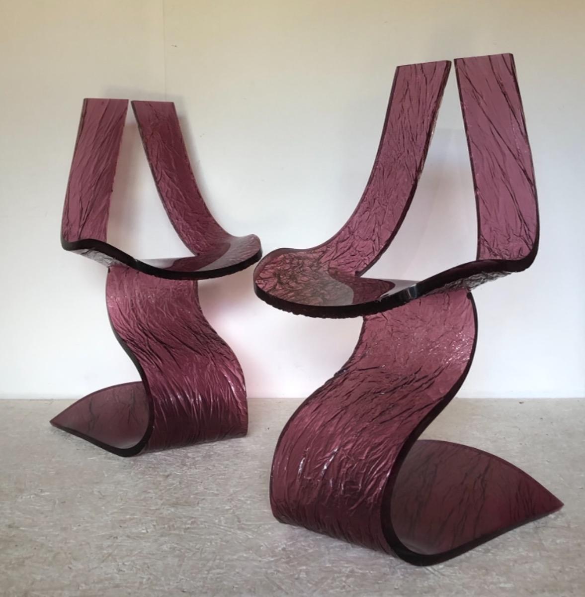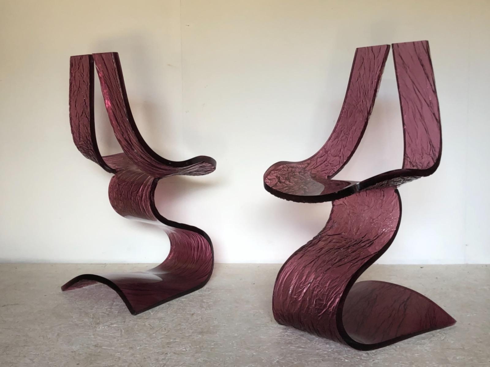 Paire de chaises en plexiglass découpé et formé a chaud .