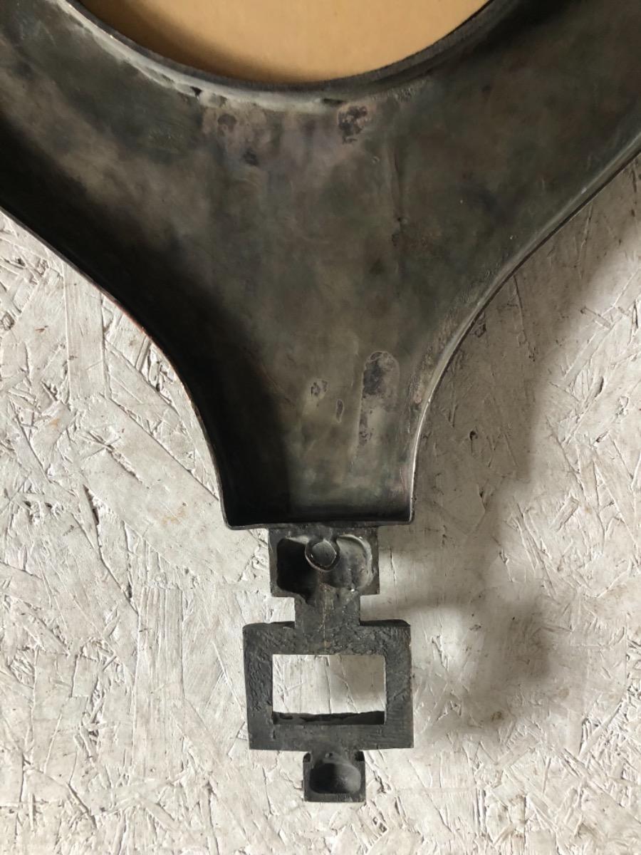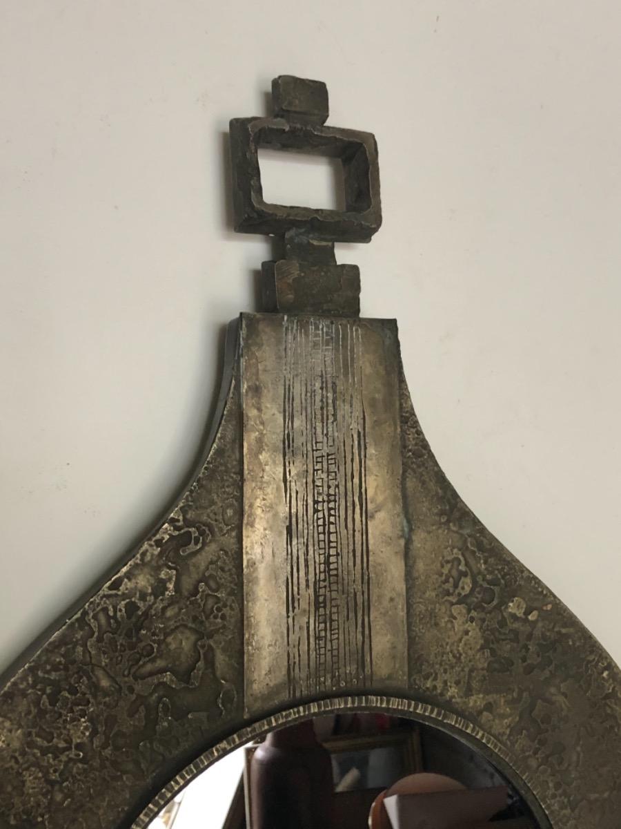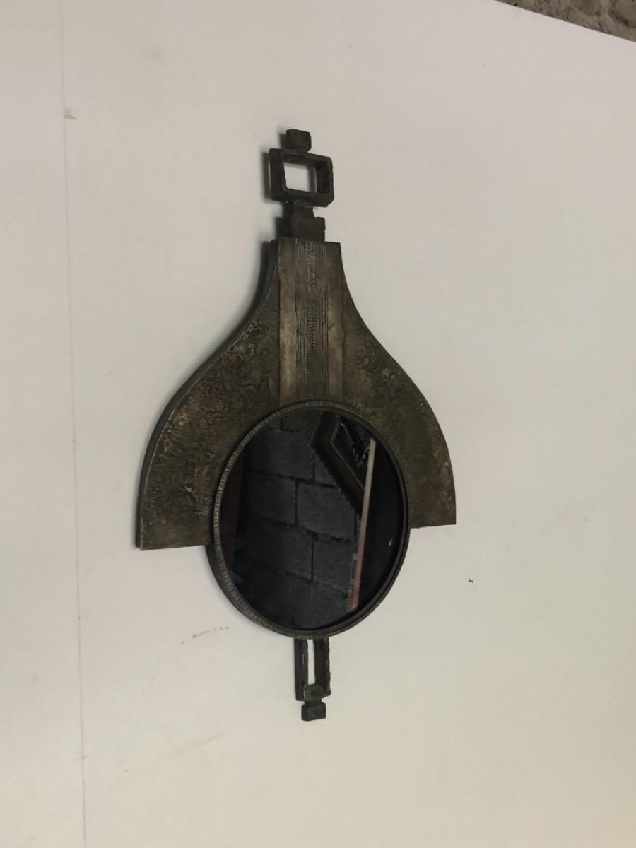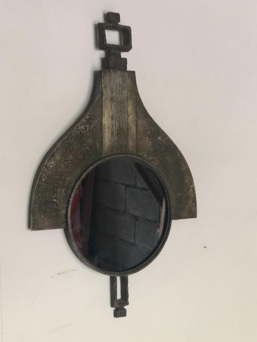Miroir italien en fer forgé battu et patiné . Travail d’artiste . Signé dans la masse. Signature a déchiffrer . Vers 1960