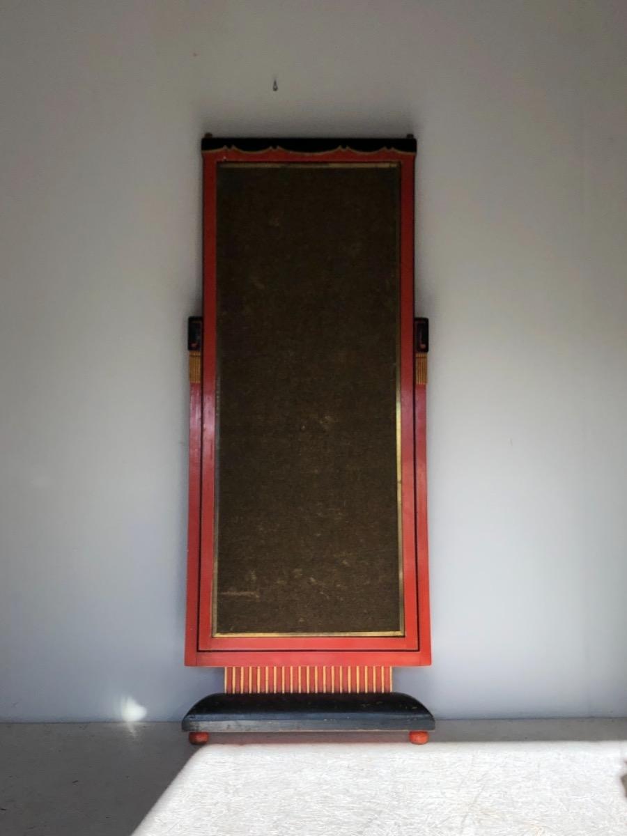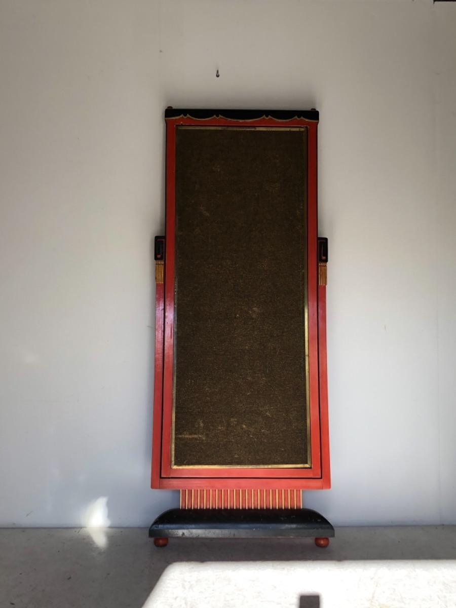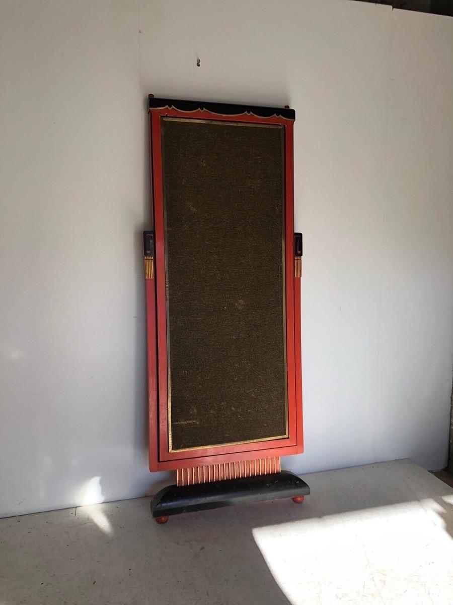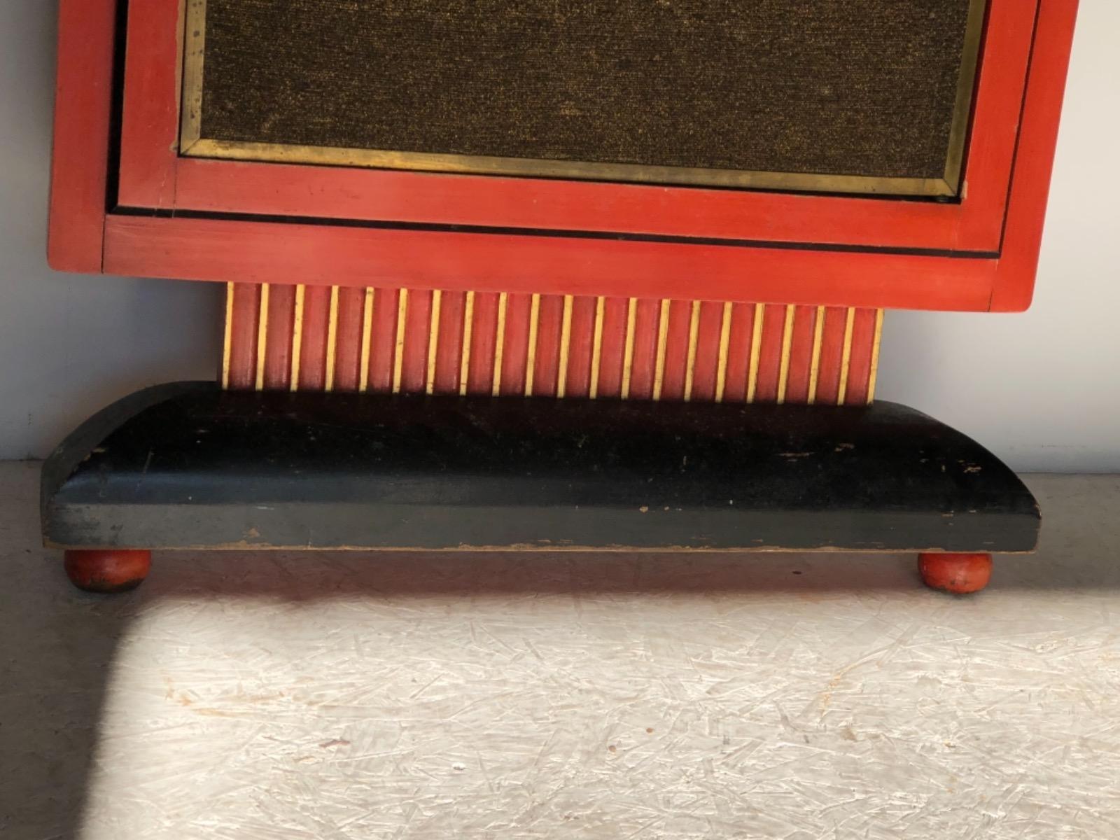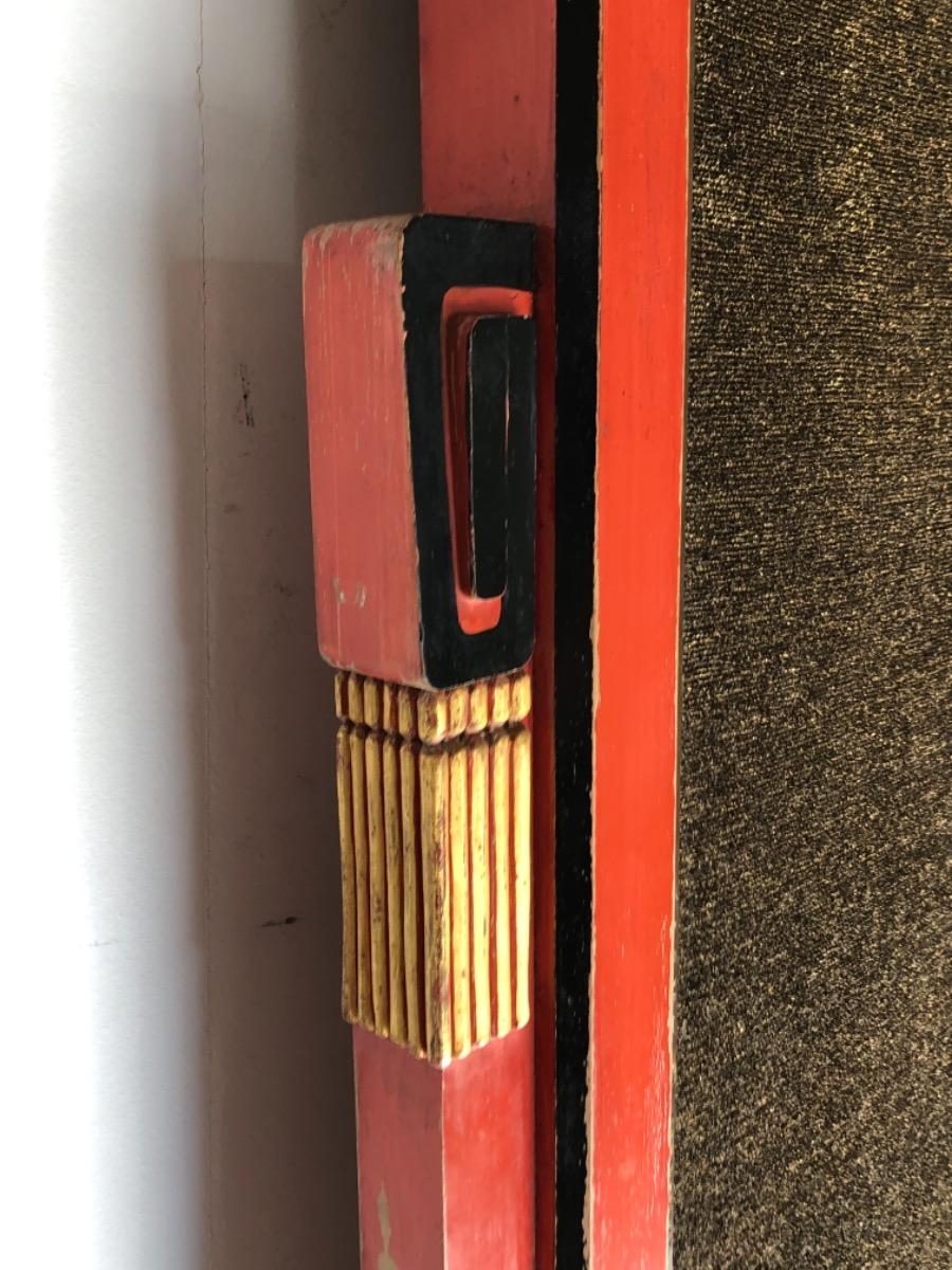 Châssis en bois laqué rouge et noir et rehaussé de dorure .