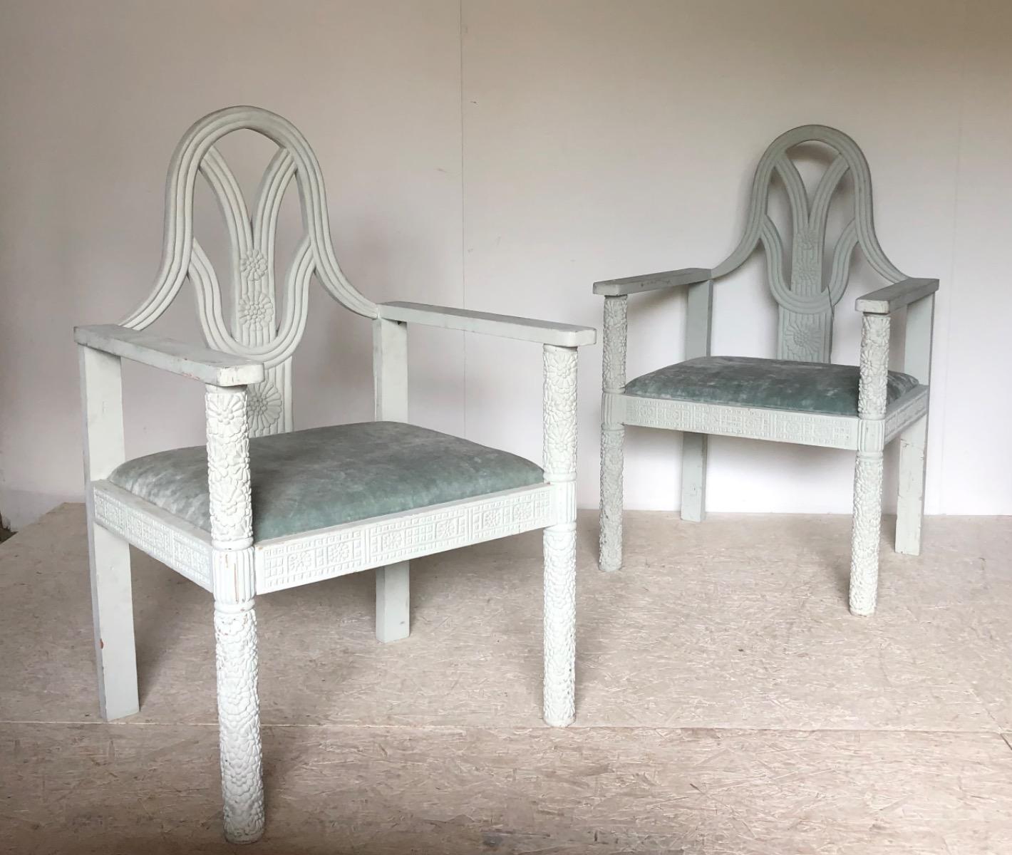 Paire de fauteuils de style Art Deco en bois sculpté .