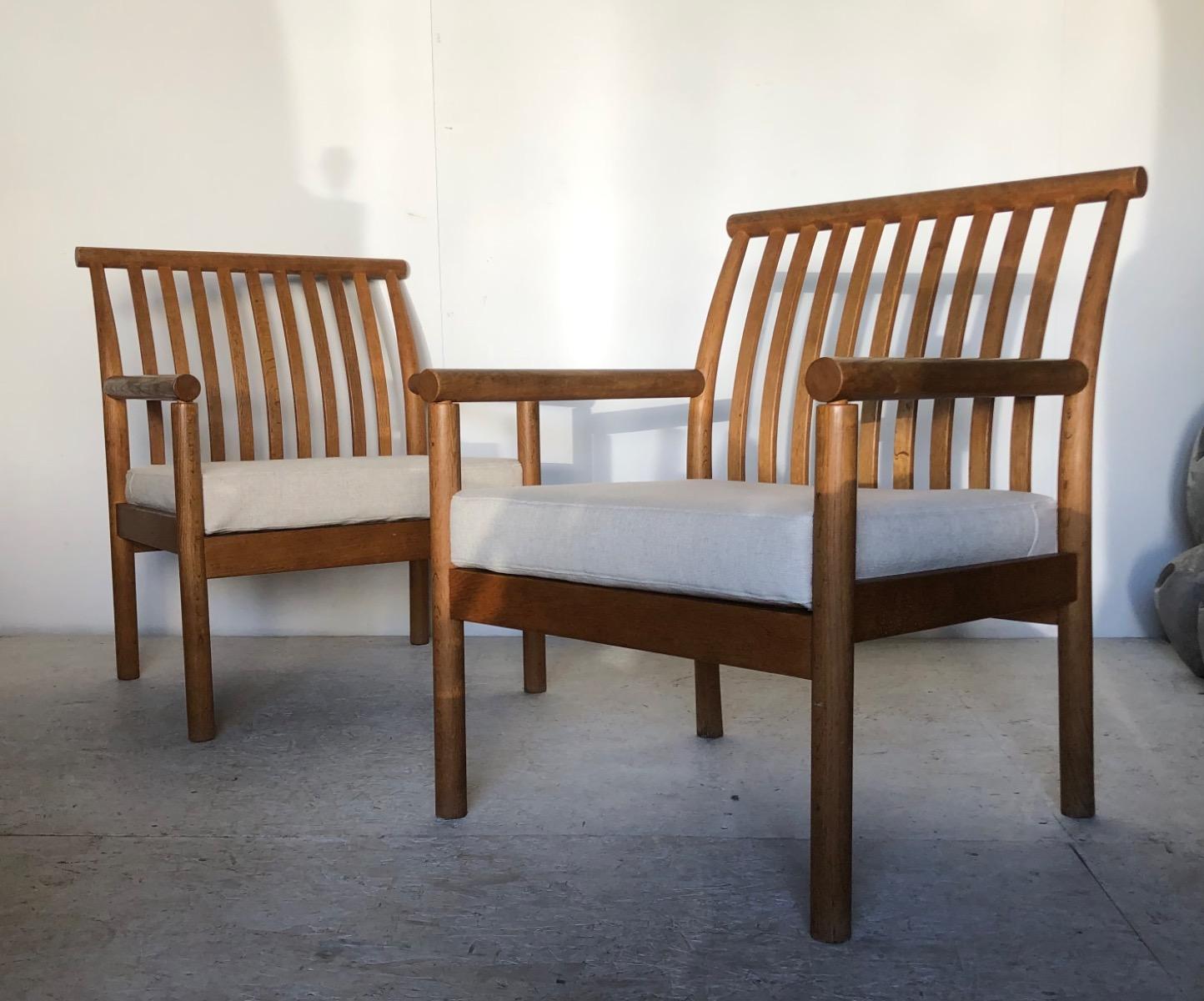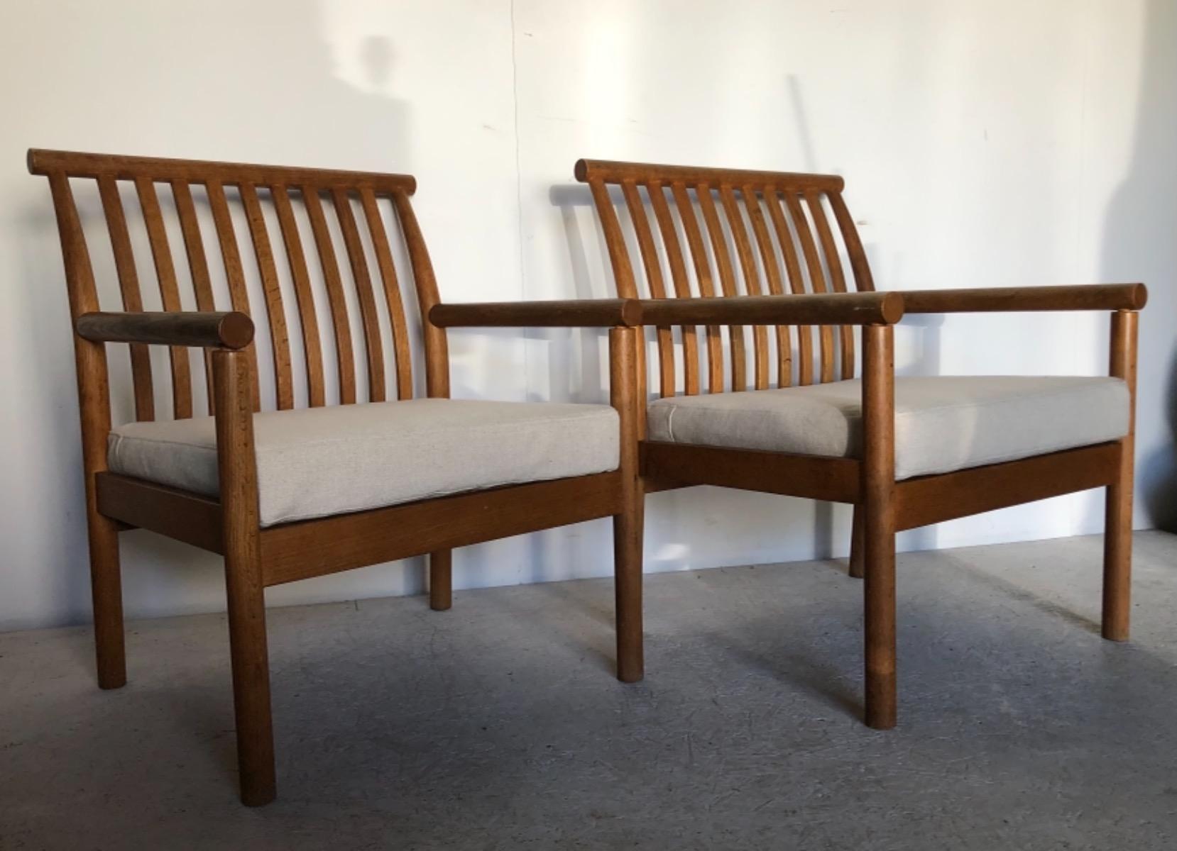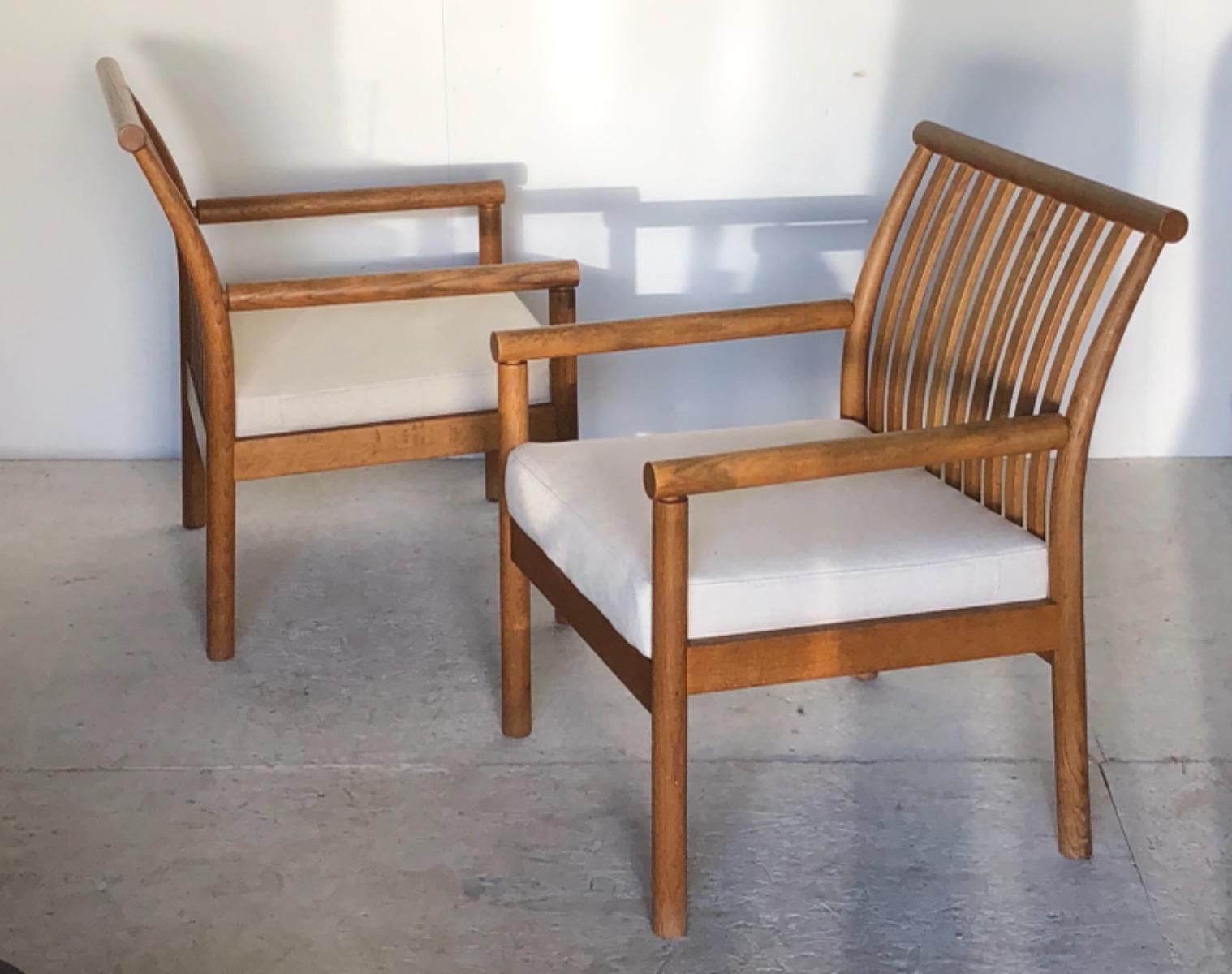 Paire de larges fauteuils scandinave en chêne blond . Circa 1960