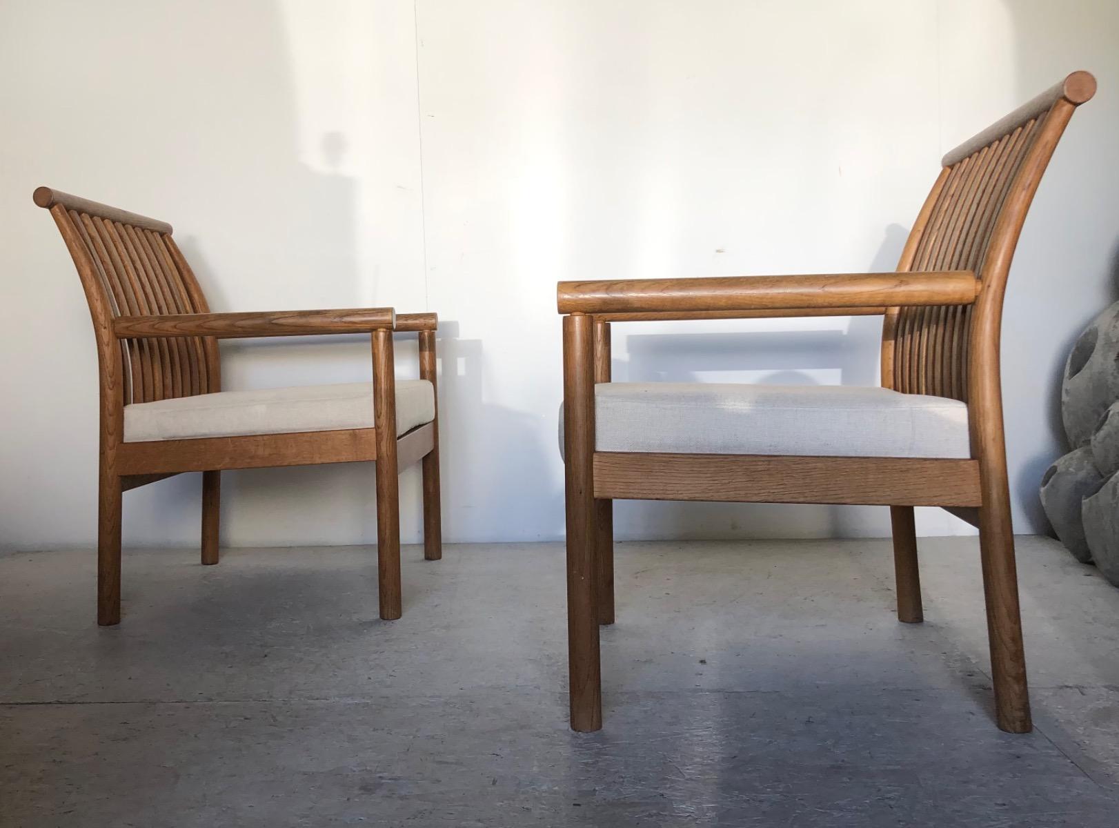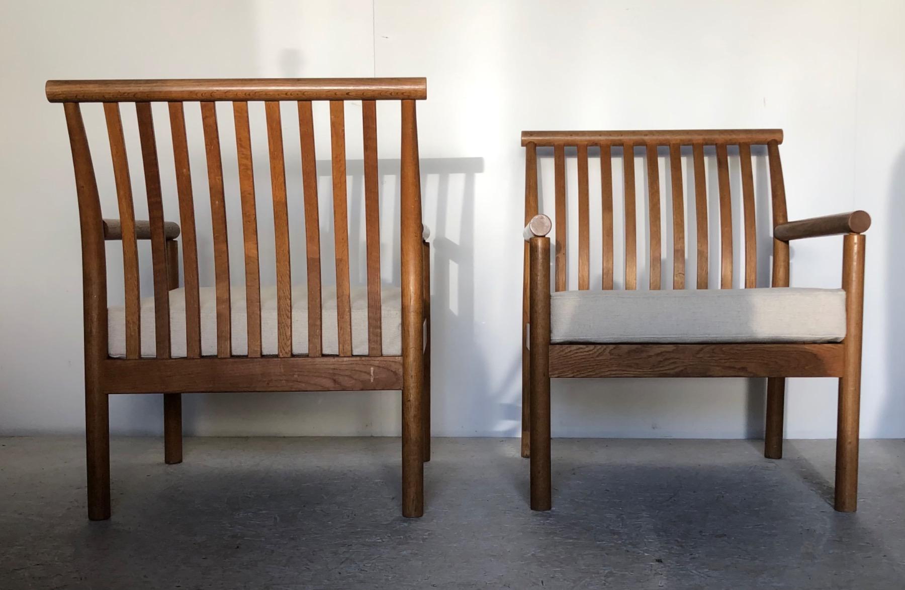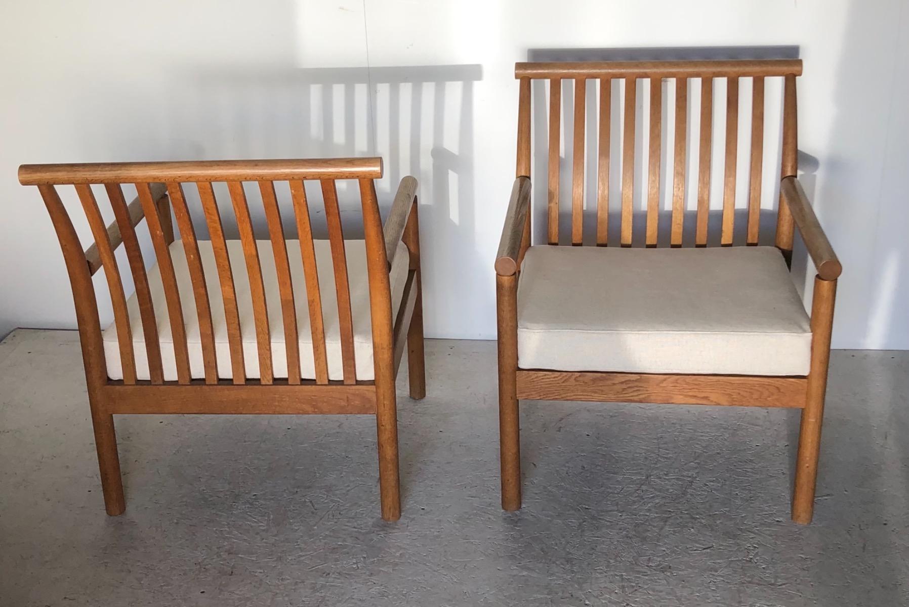 Paire de larges fauteuils scandinave en chêne blond . Circa 1960
